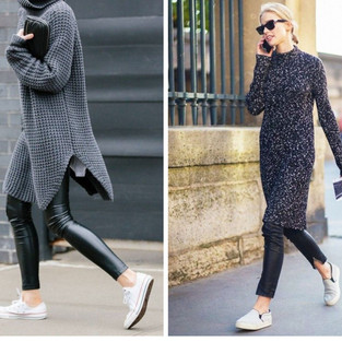 La formula migliore per portare i leggings rimane la classica combinazione con maxi maglione in inverno e maglia lunga, oppure un mini abito, in estate.