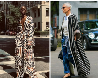 Modelli di kimono oversize nascondono i fianchi e andranno indossati aperti, senza la cinta in vita, da chi ha un fisico a pera. L’opposto invece dovrà fare che vuole spezzare la figura perché non ha un punto vita ben definito.